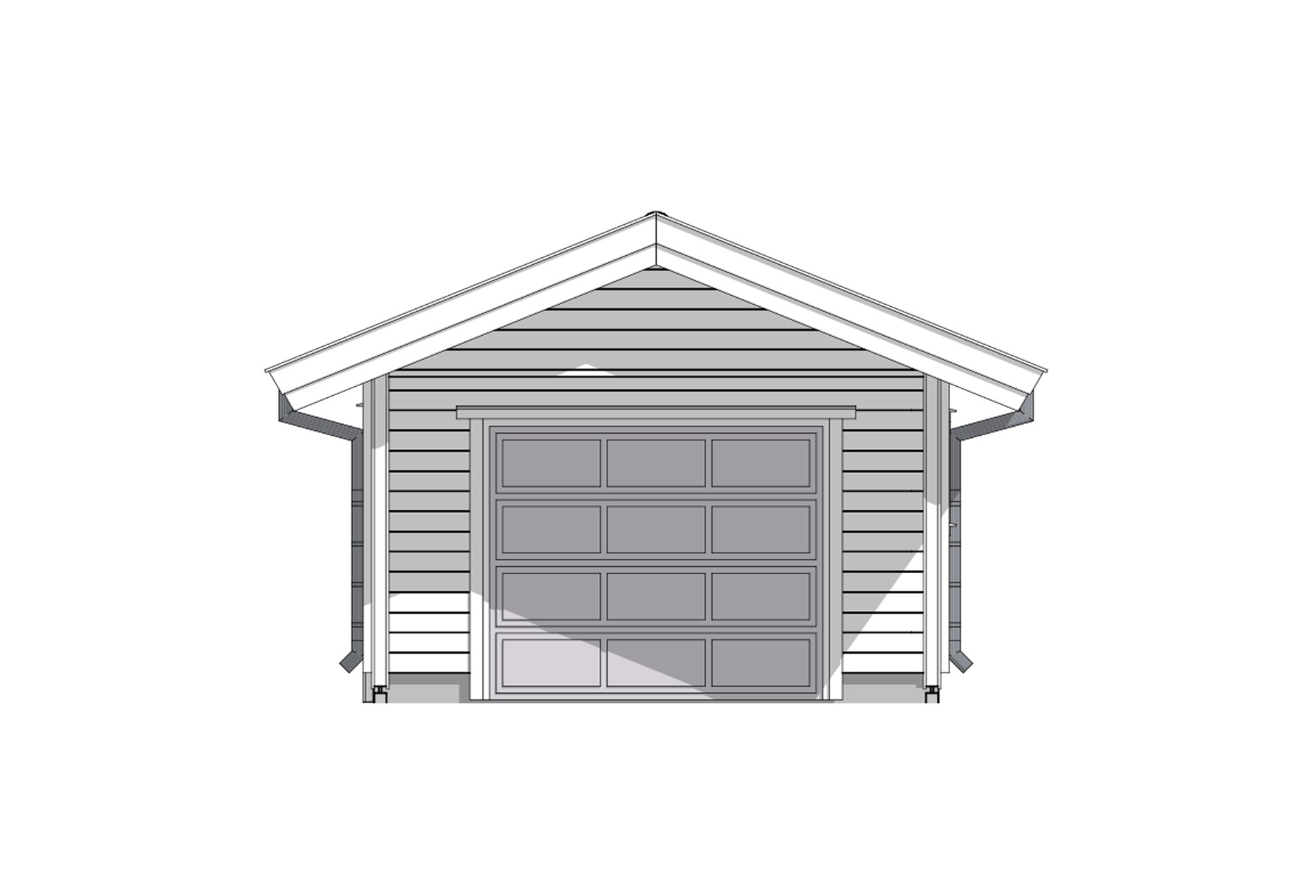 Den klassiske garasjen 802 har mønt tak og en enkel fasade som vil passe inn de fleste steder. Overbygg og søyler gir garasjen et klassisk ytre.