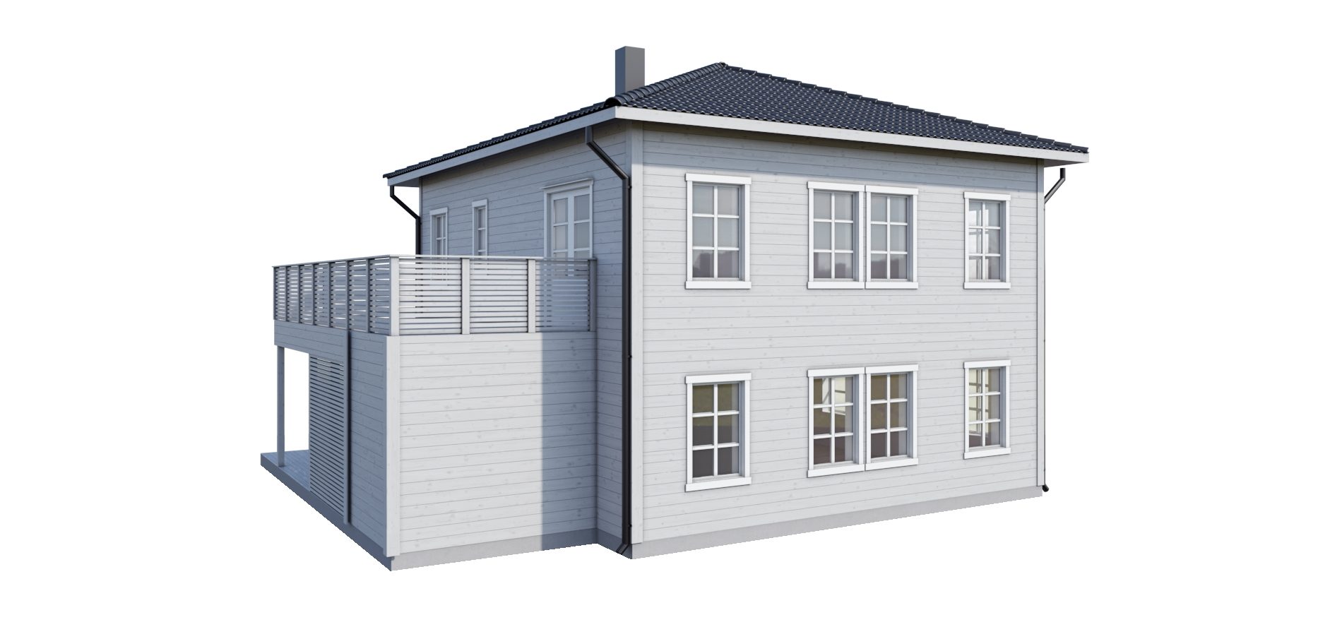 Går du opp en etasje finner du ytterligere ett baderom og ett soverom, som også kan benyttes til oppbevaring, kontor eller garderobe. Husets største rom, en åpen stue-/kjøkkenløsning på hele 36,9m2 har plass til flere sittegrupper og tv-møbler. Kjøkkenkroken ligger litt skjermet i dette sammenhengende oppholdsrommet og tillater familien å gjøre hver sine ting, samtidig som man kan være sammen. Fra stue har du utgang til verandaen, som på varme sommerdager fungerer som en forlengelse av den allerede store stuen.