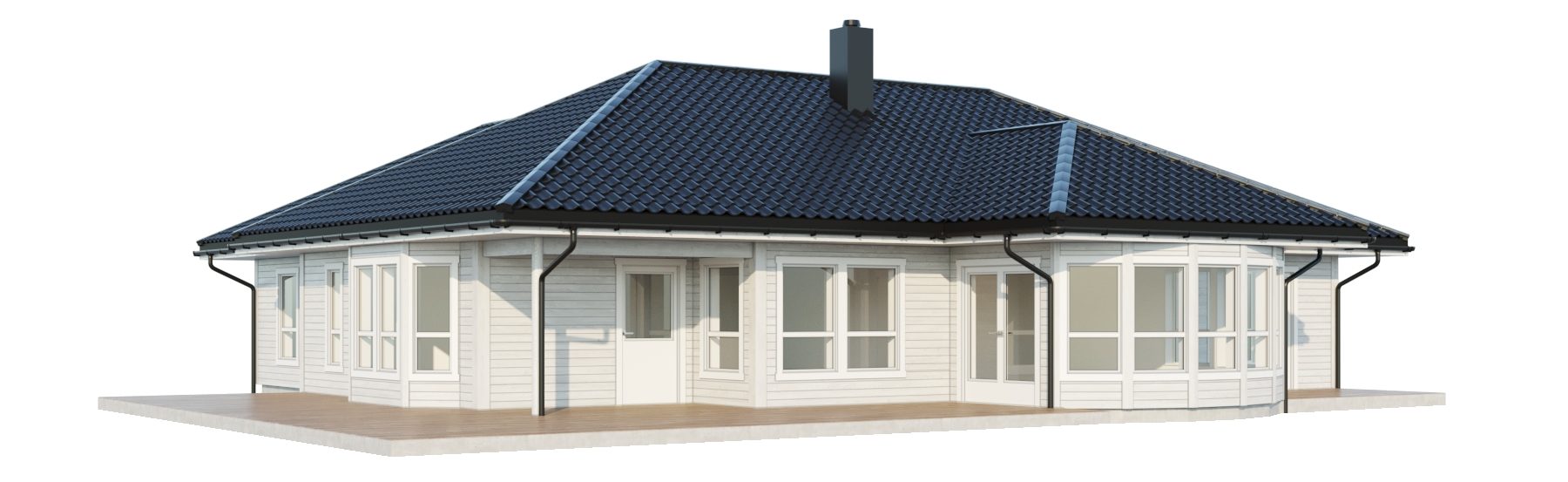 Boligens åpne stue-/kjøkkenløsning gir en følelse av mye volum. Her har du plass til mange sittegrupper, spisebord, et stort og innholdsrikt kjøkken med kjøkkenøy og mulighet for peis. Buede vindusløsninger gir vakre rom og skaper et flott og herskapelig uttrykk både utvendig og innvendig. Fra to utganger i allrommet har du tilgang til en stor terrasse som rammer inn stue og kjøkken.